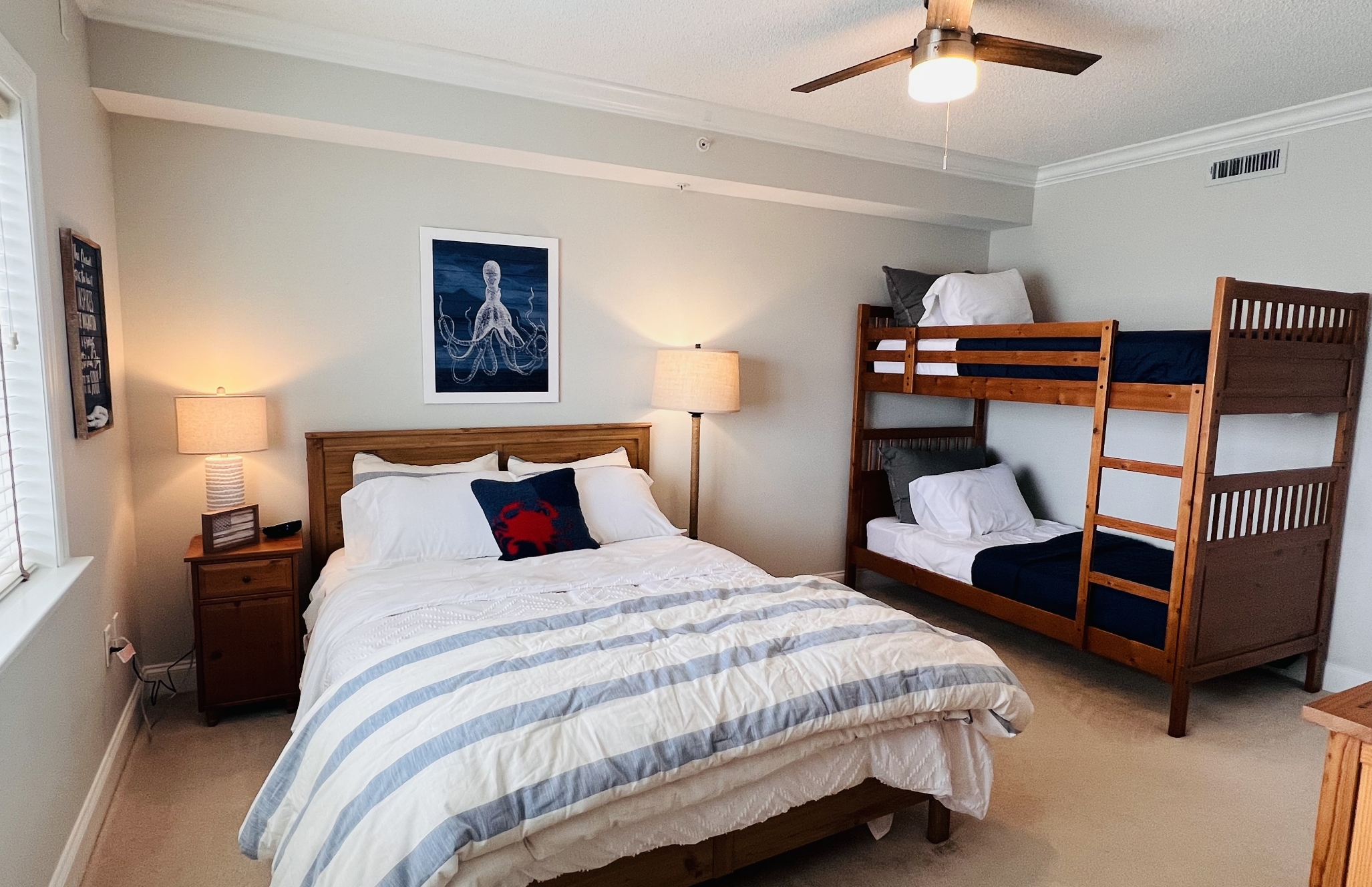 1 Queen / 1 bunk (2 twins) / 1 single twinÂ